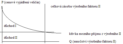 Existence symetrického schématu (v případě, že výrobní faktor II považujeme za fixní a postupně zaměstnávány jsou jednotky výrobního faktoru I) je podmíněna tím, že oba výrobní faktory jsou v rovnoprávném postavení (jeden může zaměstnávat a také zaměstnává druhý a naopak) a že zaměstnána může být celá zásoba každého z výrobních faktorů31).