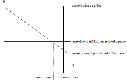 Pokud budeme uvažovat reprodukční náklady na příslušný výrobní faktor samostatně (což má smysl zejména v případě práce), pak může dojít k tomu, že mezní příjem práce začíná být od určitého momentu menší než jsou reprodukční náklady na práci. To lze vyjádřit následujícím schématem:
