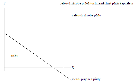 Uveďme si jako příklad vztah mezi půdou a kapitálem v případě, že zásoby půdy je větší než zásoby příležitostí zaměstnat půdu druhým výrobním faktorem (kapitálem):