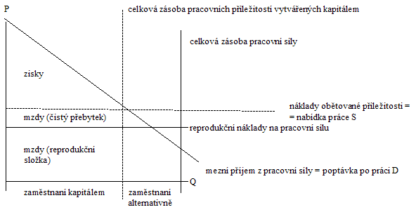 V uvedeném případě pak platí, že celková zásoba příležitostí zaměstnat práci půdou je menší než celková zásoba práce.