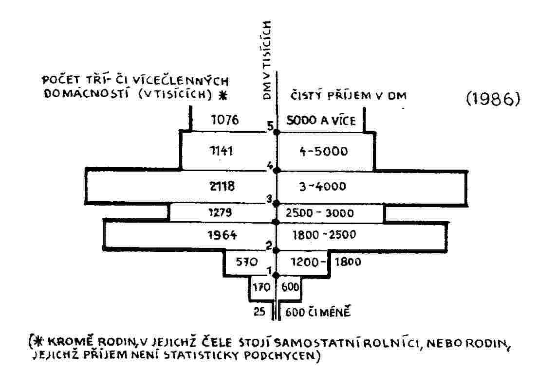Do ideálních rozvrstvení má i tato společnost ještě daleko. (Ideálním tvarem sociálního rozvrstvení by měl být vlastně kruh s minimálním počtem nejbohatších a nejchudších vrstev, tedy společnost bez krajních sociálních rozdílů s naprostou převahou dobře situovaných středních vrstev, nikoli však rovnostářsky násilně deformovaná. Ideálním tvarem generačního rozvrstvení je obdélník, znázorňující společnost udržující počet svého obyvatelstva na daném stavu bez kojenecké úmrtnosti, bez většího výpadku jednotlivých ročníků se značnou délkou života a podobně.)