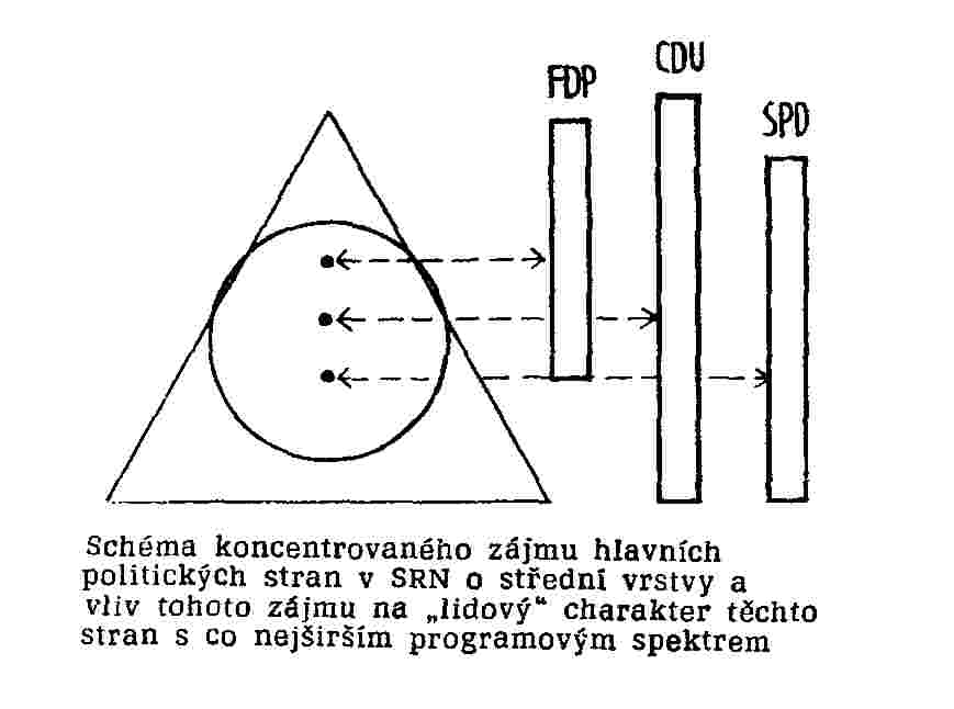 I strany, které se tu a tam charakterizují jako „třídně orientované”, se této tendenci nemohou vyhnout. Odlišné zůstávají jen způsoby tohoto zaměření na střední vrstvy, akcenty volebních programů, různost generační orientace či metod politické agitace.