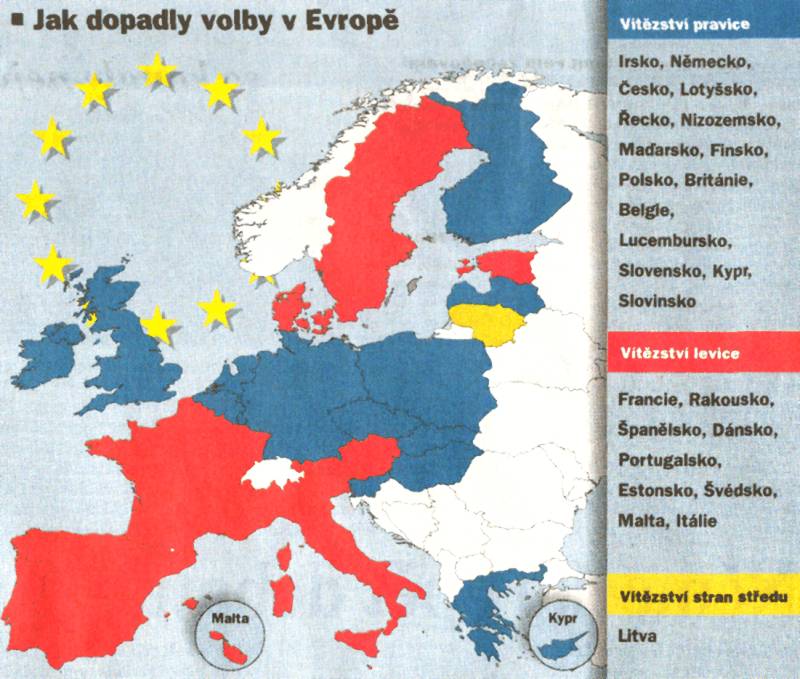 Česku utrpěla porážku vládní sociální demokracie.| Frakce v EP | volby 2004 | před volbami |