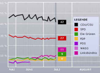 - Levicový blok si dále polepšuje, Spiegel-Online, 16. 7. 2005