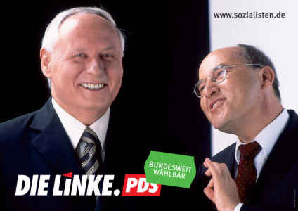 Gysi se však také smířil s tím, že sice vede novou levici do Spolkového sněmu rovnoprávně s Lafontainem, že však fakticky přijal nezvyklou roli pobočníka. „Telefonujeme si každý den”, říká Gysi. V Lafontainově světě se naproti tomu nový partner neobjevuje: o Levicové straně, o WASG či dokonce o PDS mluví Lafontaine pěkně jako nikdy. O svém spolupilotovi Gysim, který k němu na předvolebním plakátu vzhlíží devótně jako číšník malé výletní restaurace na prominentního hosta, se však nezmíní ve většině svých sólových výstupů ani slovem.