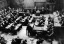Norimberk, 20. listopadu (United Press) - 20 padlých vůdců nacistického režimu stálo dnes před soudem Spojených národů. Neklidně naslouchali zdrcujícím obviněním, která je činila bezprostředně odpovědnými za smrt a utrpení, které lidstvu přinesla druha světová válka.