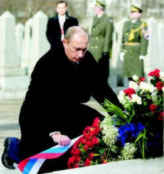 Ruský prezident svůj včerejší program začal již ráno, kdy položil spolu s českým prezidentem Václavem Klausem na Olšanských hřbitovech květiny na hroby ruských vojáků, kteří padli při osvobozování Československa v roce 1945.