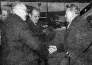 K četným rituálům při politické práci patřilo vítání a loučení na snímku zleva: J. Hendrych, O. Kolder a A. Novotný