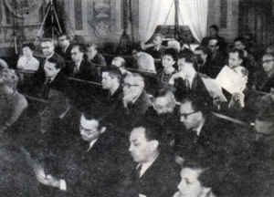 Pohled na účastníky slavné mezinárodní vědecké konference o díle F. Kafky v Liblicích (1963)