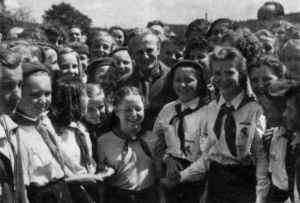 K oblíbeným politickým kratochvílím bývalých vůdců patřilo fotografování s pionýry: A. Novotný s dětmi v Lánech (1958)