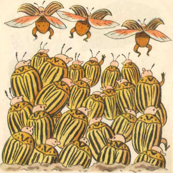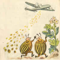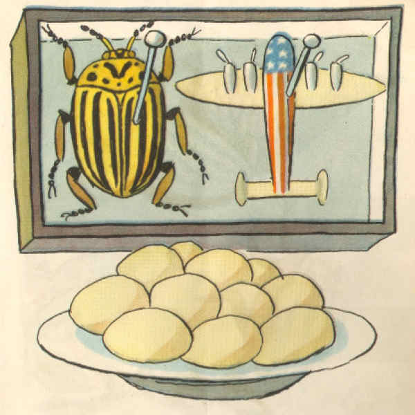 Polozapomenutá agitka z roku 1950 geniálního Ondřeje Sekory, autora Ferdy Mravence a Brouka Pytlíka, je dnes zábavným svědectvím o době, ve které vznikla. (Kliknutím na obrázky si je můžete zvětšit).O mandelince americké, která chce loupit z našich talířů