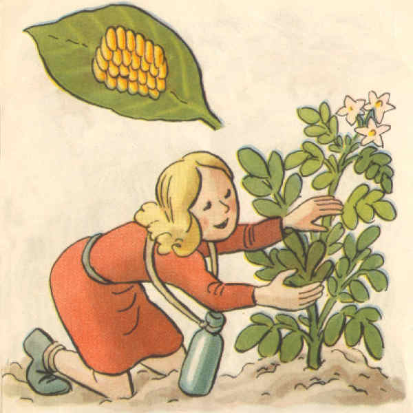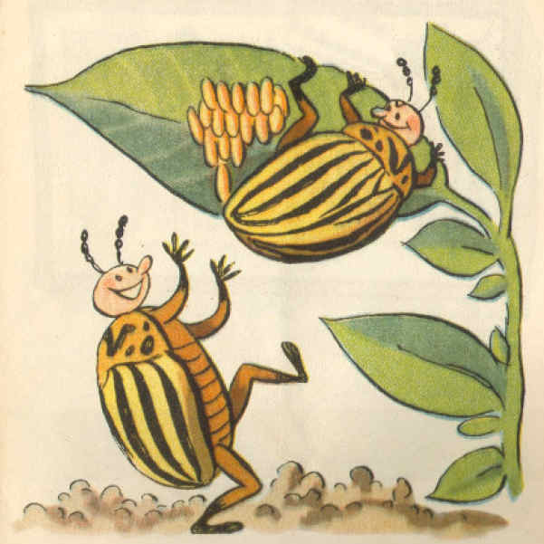 Ne, nedáme se! Celé výpravy dětí půjdou zachránit naši úrodu. Zespodu si prohlédnou všechny bramborové keříčky, zda nenajdou na rubu listů vajíčka.