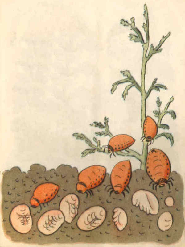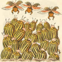 Z kukel se už líhne pěkná záplava dospělých brouků. Už se rozlétají, aby se napásli na bramborové nati. Co nesežerou, to pokryjí spoustami svých vajíček.