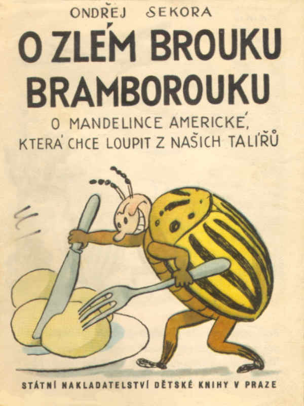 O mandelince bramborové, která chce loupit z našich talířů / Obrázky nakreslil autor / Vydalo Státní nakladatelství dětské knihy v Praze roku 1950 / Vytiskla Státní tiskárna, závod 04 / První vydání / Výtisk 1-120.000 / cena 3 Kčs / 129/290