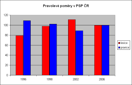 Pokud politické spektrum zjednodušíme na levici a pravici (někteří čtenáři nechť na chvíli přijmou definici, že levice = ČSSD a KSČM, pravice = zbytek), dostaneme následující obrázek: