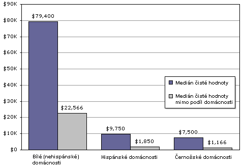 | Obrázek 3: Medián čistého bohatství podle etnicity a rasy, 2000 |