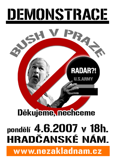Ve dnech 4. a 5. června 2007 bude v Praze na oficiální návštěvě prezident Spojených států George W. Bush. Prezident Bush přijede do České republiky prosazovat výstavbu radarové základny sytému protiraketové obrany USA.