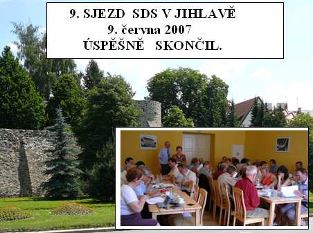 V sobotu 9. června 2007 se v Dělnickém domě v Jihlavě sešli delegáti 9. sjezdu SDS. Delegáti vyhodnotili současnou hospodářskou a společenskou situaci, projednali záměry SDS pro následující období, zvláště s ohledem na očekávané pravicové odbourávání sociálního státu.