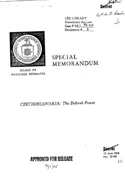Na stránkách CIA se může veřejnost seznámit s některými dokumenty - produkty této tajné služby -, které byly po letech odtajněny. Jedním z nich je zvláštní memorandum s názvem "Czechoslovakia: The Dubcek Pause" z 13. června 1968, které připravil Výbor pro národní odhady CIA. Je nepochybně zajímavé podívat se na sebe očima tehdejšího protivníka a