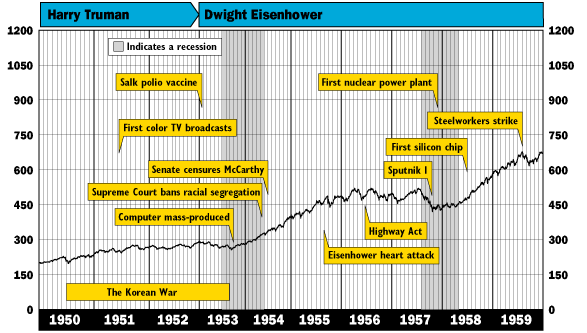 Vzestup pokračuje - kromě korekce v polovině roku 1962 - ažž do poloviny 60. let.
