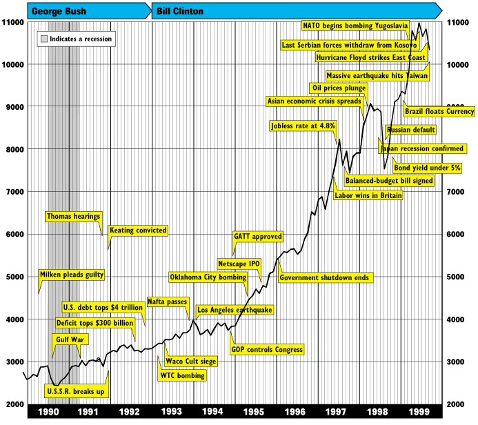 Vraťťme k přehledu událostí - před námi jsou 90. léta: býčí trh pokračuje.