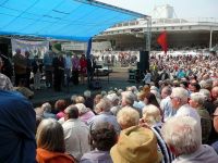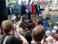 Těm mladým lidem se ale ani nedivím. Na závěr hlavní části oslav se hrála internacionála, ta dnes pro mladé lidi nic neznamená. Těžko mohou pochopit, že mezi účastníky byli lidé, kteří zažili mnoho příkoří už od dob I. republiky a že při Internacionále zvedají ruku se zaťatou pěstí, jako revoluční symbol. Vedle mne poskakoval fotoreportér jakéhosi plátku, který takového starého účastníka fotografoval ze všech možných úhlů.