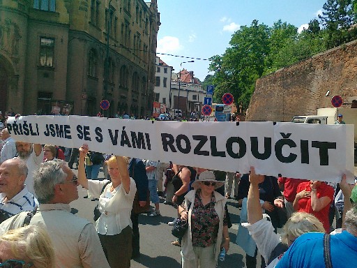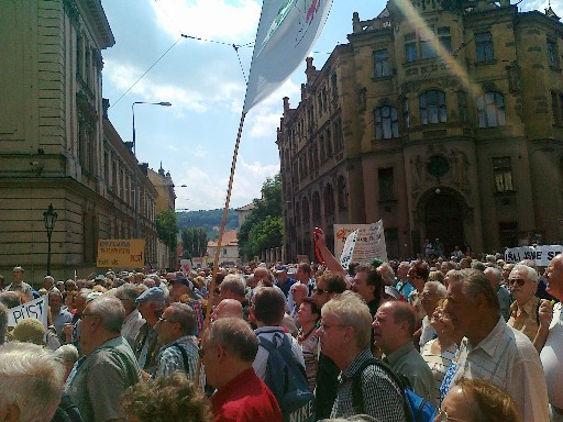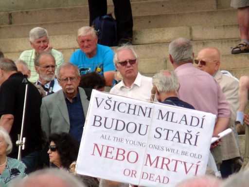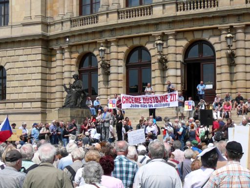 Manifestace nebyla mohutná, ale vyzývající k odmítnutí vládních reforem a škrtů, požadující demisi celé vlády. Nemá smysl komentovat slova řečníků, neřekli nic, co by se již nevědělo. Ale výrazně zazněl názor části ze tří milionů občanů, které kroky vlády a vládní koalice ohrožují a vedou k jejich chudobě. Před Rudolfinum přišli nejenom důchodci, ale i aktivně pracující a mladí lidé, včetně studentů. Z úst představitele studentů zazněla slova o mezigenerační solidaritě. Generace studentů a důchodců jsou škrty a reformami postiženi nejvíce. Nejsou ještě, nebo již, v produktivním věku. Jsou existenčně, zdravotně i sociálně závislí na prostředcích, které do státního rozpočtu přináší práce střední věkové generace. Tato generační solidarita se s věkem lidí mění, posouvá. Výstižně se to objevilo i na jednom z transparentů.
