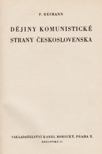 Dějiny Komunistické strany Československa vyšly v nakladatelství Karel Borecký současně česky a německy v roce 1931, kdy KSČ slavila své 10. narozeniny. Autorem publikace byl tehdy devětadvacetiletý Pavel Reiman, který byl od února 1929 členem nejužšího vedení KSČ. Lze tedy předpokládat, že na vrchol ho vynesly jeho tehdejší postoje v tehdy započatém období bolševizace strany a že je jimi nepochybně ovlivněn i jeho zveřejněný pohled. Komunistické hnutí v Československu se podle něj ve 20. letech vyvíjelo na základě rozporu mezi leninismem a šmeralismem - specificky československou formou oportunismu. To ale na této knize není to nejzajímavější.